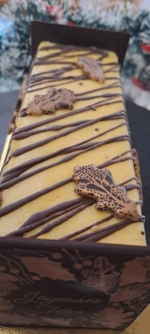 NB : 1 part = 2cm. Cette bûche convient pour 7 parts de 2 cm ou,6 plus grosses, sinon 8 parts un peu plus petites.