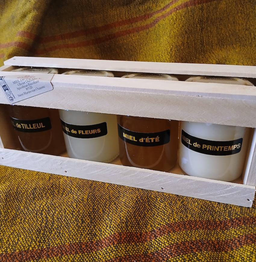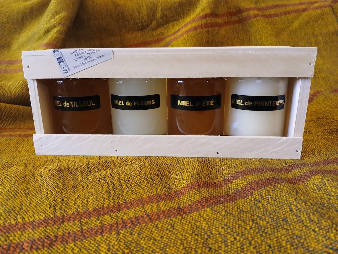 Joliment présenté dans son coffret en bois, cet assortiment de miels de la Grange Rouge est aléatoire, selon stock disponible. Un cadeau gourmand et 100% nature…