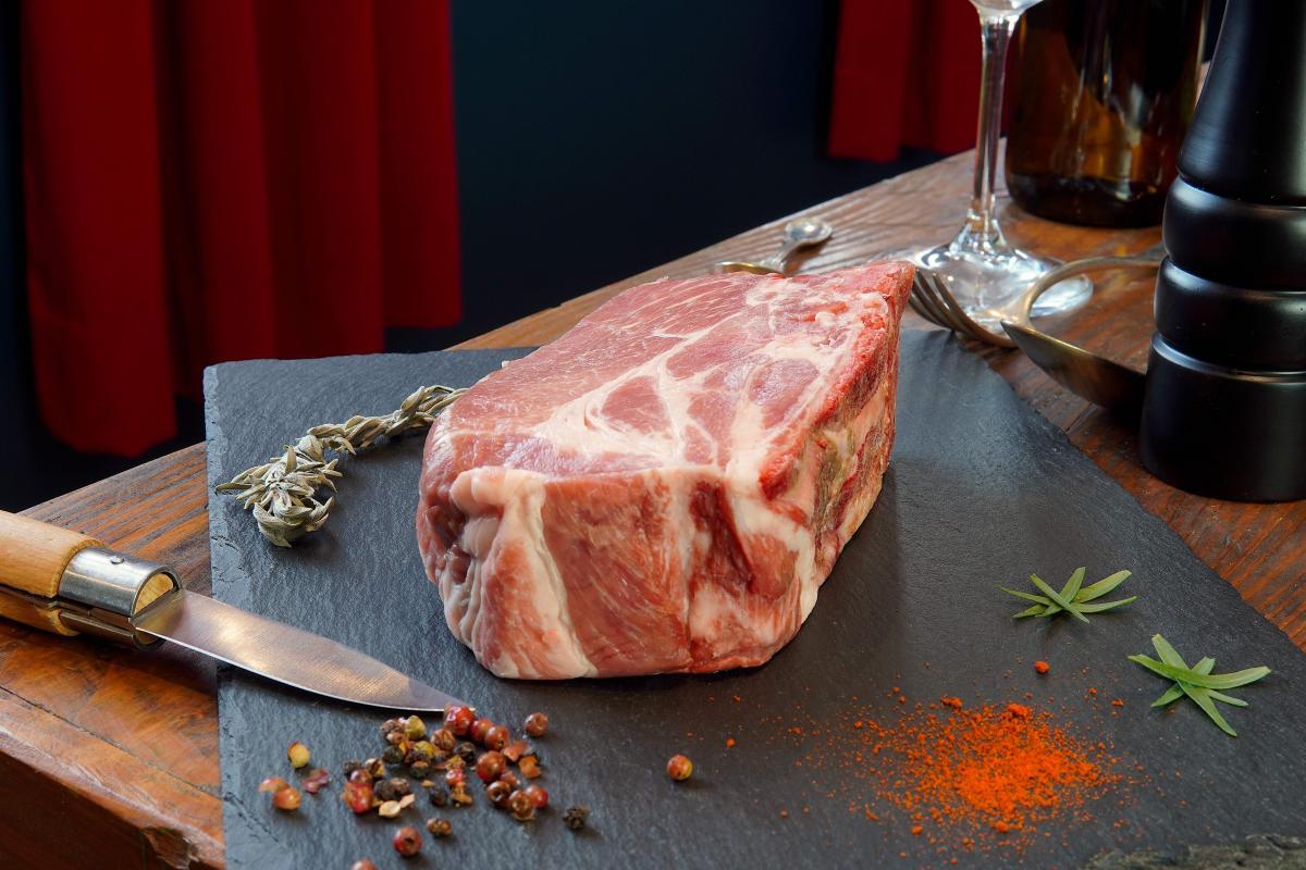 1 Côte échine épaisse issus de nos porcs, la viande reste tendre car nous laissons le temps nécessaire aux animaux pour avoir le persillé qui donnera toute la saveur à la viande.
