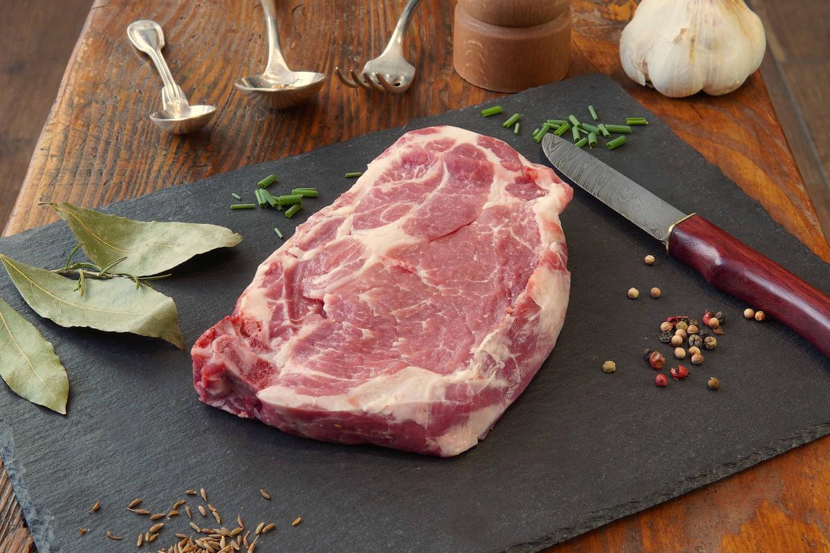 4 Côtes échine issus de nos porcs, la viande reste tendre car nous laissons le temps nécéssaire aux animaux pour avoir le persillé qui donnera toute la saveur à la viande.