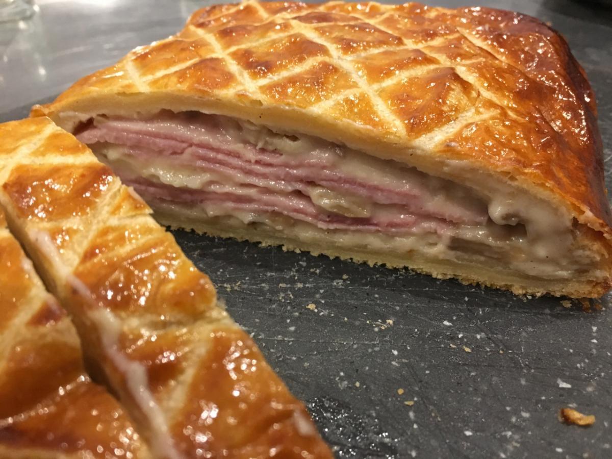 Notre feuilleté est fabriqué à partir de jambon de porcs élevés à Maillot.