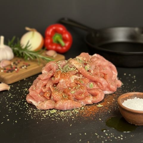 Ingrédients : Viande porc, saumure, labelchair, galimax, cumin, coriandre