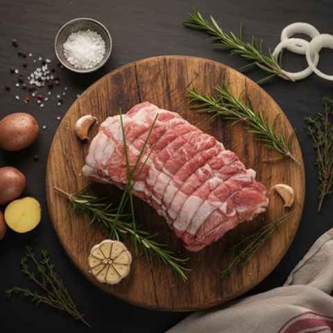 Rôti issu de nos porcs, la viande reste tendre car nous laissons le temps nécessaire aux animaux pour avoir le persillé qui donnera toute la saveur à la viande.