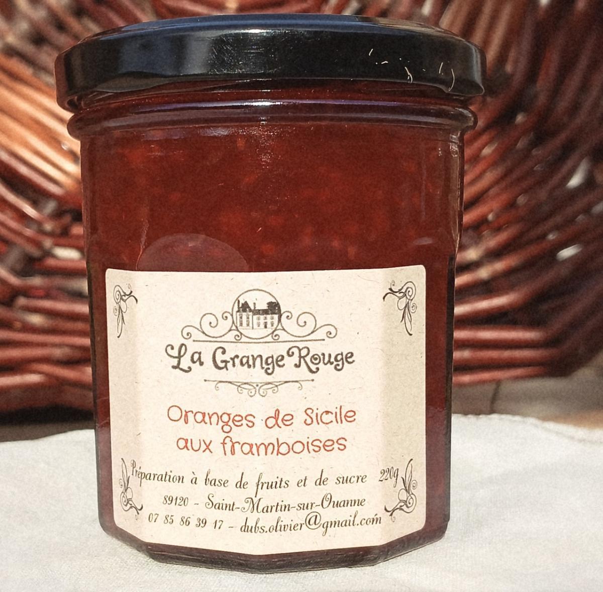 Ingrédients : Oranges amères bio de Sicile, framboises, sucre, citron, poudre de combawa, agar agar.