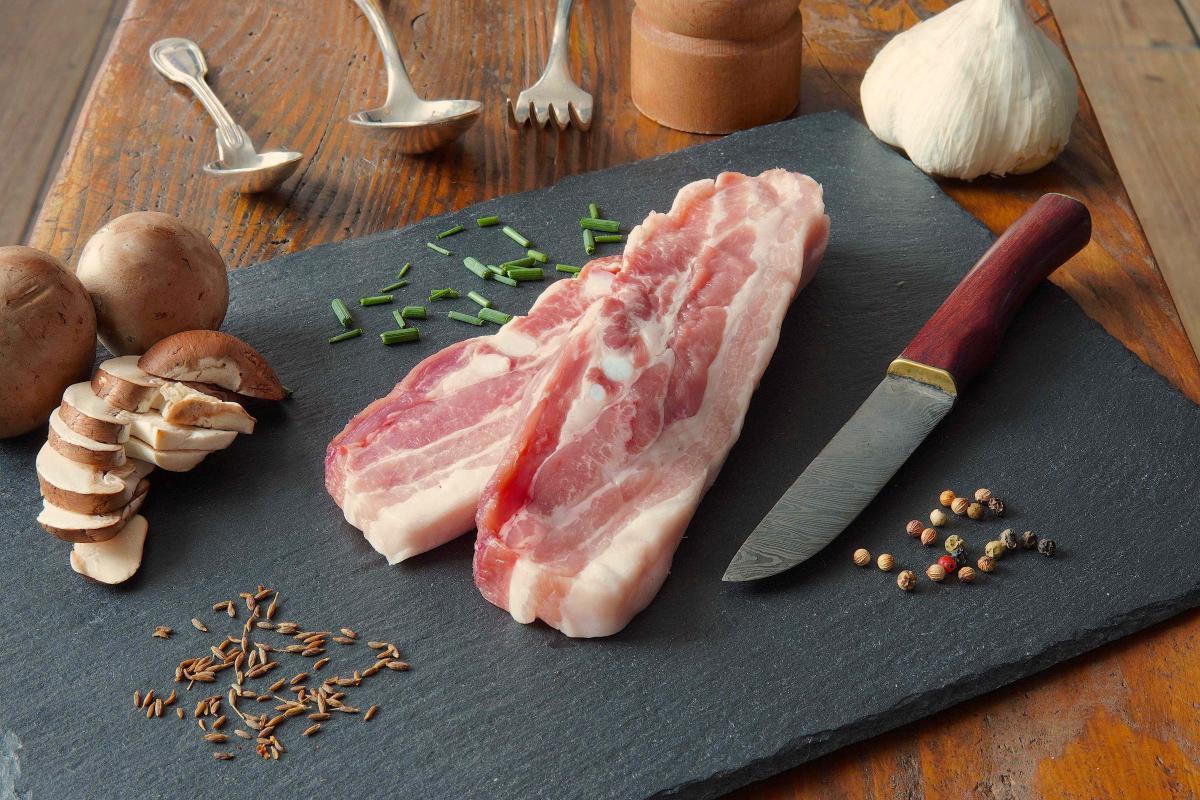 Poitrine fraiche issus de nos porcs, la viande reste tendre car nous laissons le temps nécessaire aux animaux pour avoir le persillé qui donnera toute la saveur à la viande.
