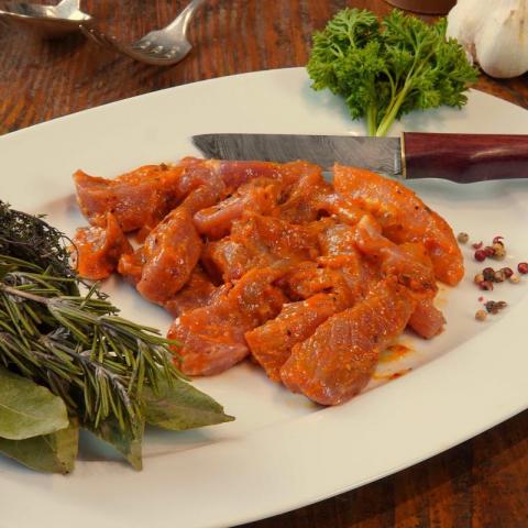 Sauté de porc issus de nos porcs, la viande reste tendre car nous laissons le temps nécessaire aux animaux pour avoir le persillé qui donnera toute la saveur à la viande.