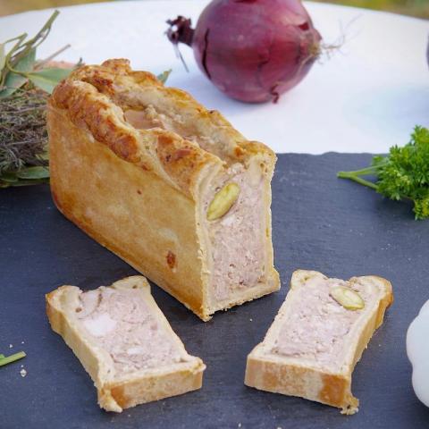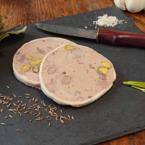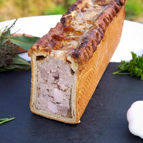 Terrine fabriquée avec une recette maison et uniquement avec les produits de nos porcs, sans conservateur.
