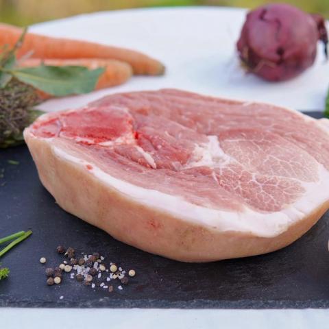 Rouelle issus de nos porcs, la viande reste tendre car nous laissons le temps nécessaire aux animaux pour avoir le persillé qui donnera toute la saveur à la viande. De plus, la rouelle est une pièce du jambon, et vous retrouverez cette saveur typique du jambon.