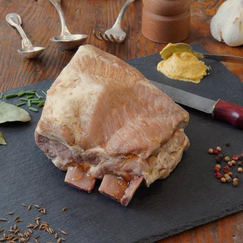 Rôti palette issus de nos porcs, la viande reste tendre car nous laissons le temps nécessaire aux animaux pour avoir le persillé qui donnera toute la saveur à la viande.