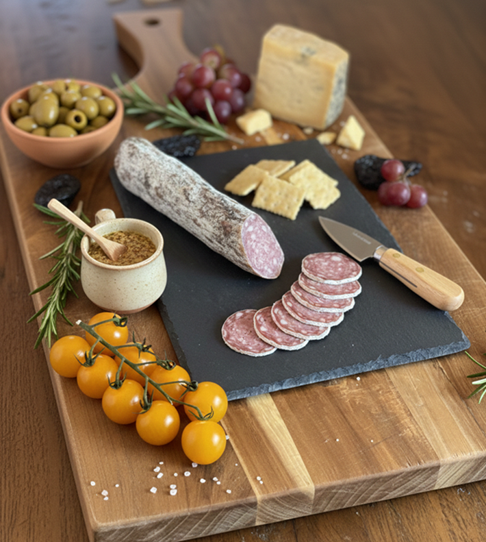 Notre rosette est fabriquée avec une recette maison et uniquement avec les produits de nos porcs, sans conservateur. Elle est séchée dans notre séchoir naturel.