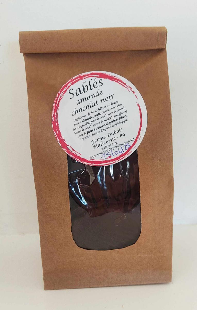 farine de blé bio, beurre, poudre d'amande, oeufs, chocolat noir bio et équitable 70% (pâte de cacao bio, sucre de canne bio, beurre de cacao bio, extrait de vanille bio)
