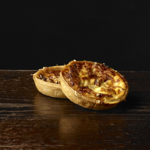 Pâte feuilletée, crème liquide, oeufs, moutarde, tomate, dés de poulet roti, emmental