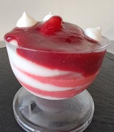 composition : sorbet citron et sorbet fraise-framboise, coulis de fraise